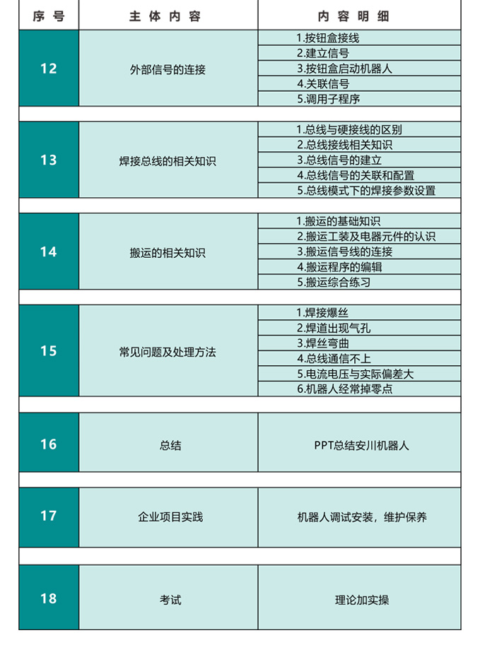 安川工業(yè)機(jī)器人技術(shù)工程師1對1培訓(xùn)班培訓(xùn)內(nèi)容流程。
